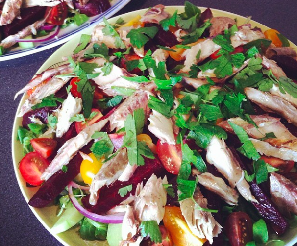 Het is herfst en de wintertijd is ingegaan, maar ik ben nog steeds een beetje in de ontkenning. Heerlijk hoor, stamppot, maar dat heb ik toch al snel wel weer gehad. Om te doen alsof het eigenlijk gewoon nog zomer is hierbij het recept voor een kleurrijke zomerse makreel salade! En nog heel gezond ook. Wat wil een mens nog meer?