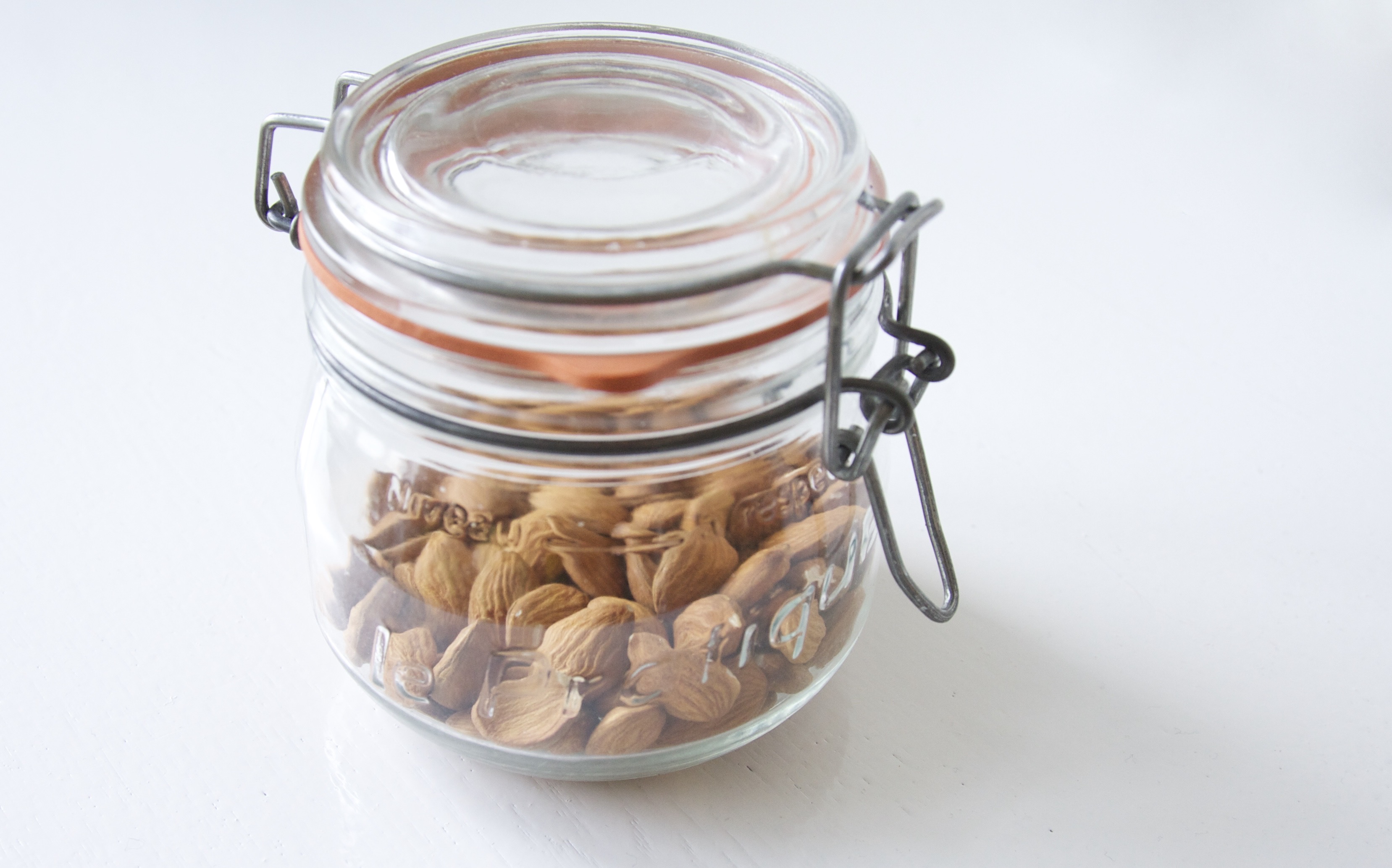 per 200 ml water 20 gram on-geroosterde amandelen met het vliesje er nog omheen