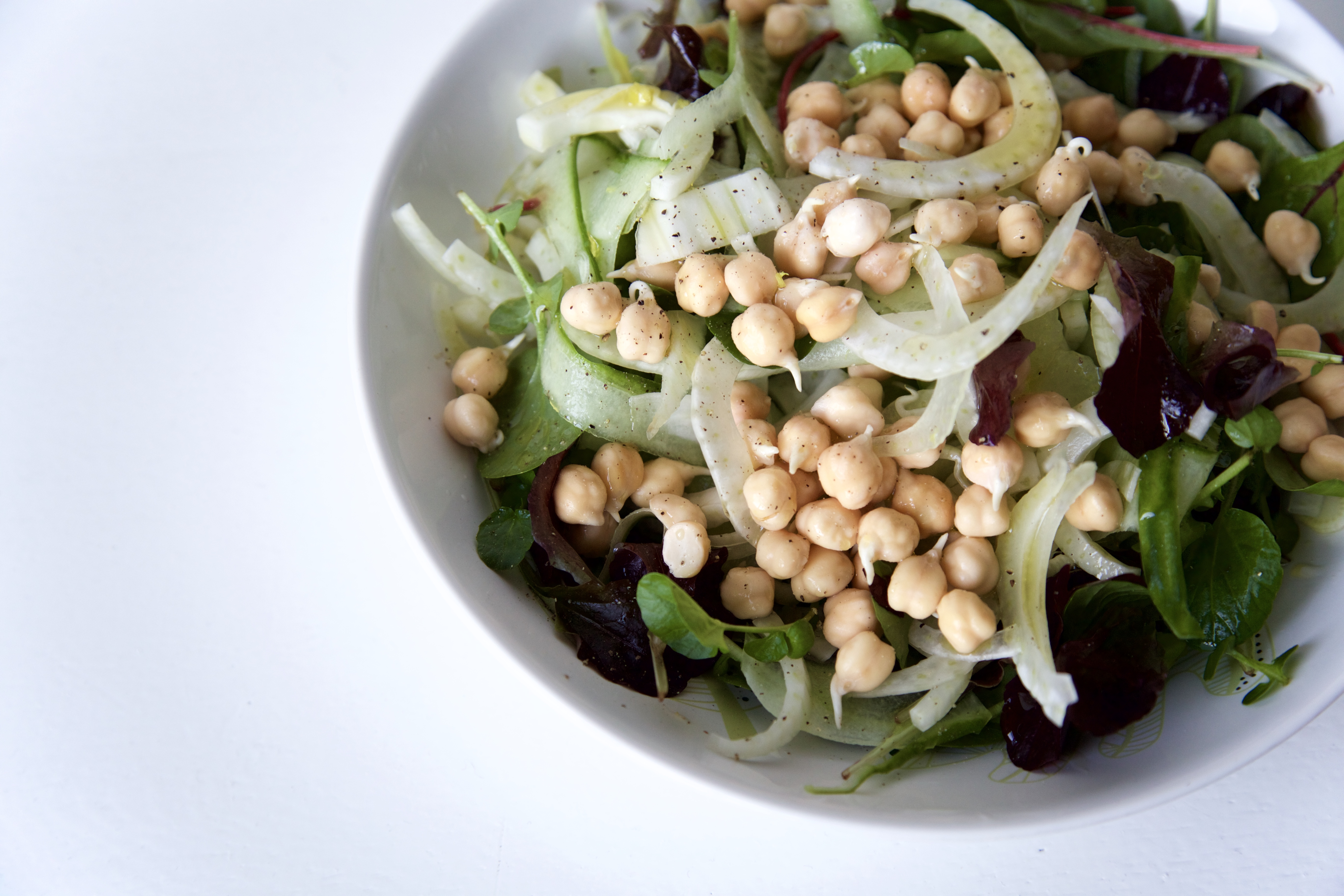 Ik kwam afgelopen week iets nieuws tegen op de versafdeling van de de supermarkt: gekiemde kikkererwten. Ik wist dat je dit zelf kon maken – nog nooit gedaan overigens – en dat kiemgroenten erg gezond zijn, dus natuurlijk moest ik dit product testen. Het resultaat is een frisse salade met dungesneden venkel, komkommer, waterkers en gekiemde kikkererwten. Perfect als bijgerecht of lunch. In deze blogpost vind je het recept!