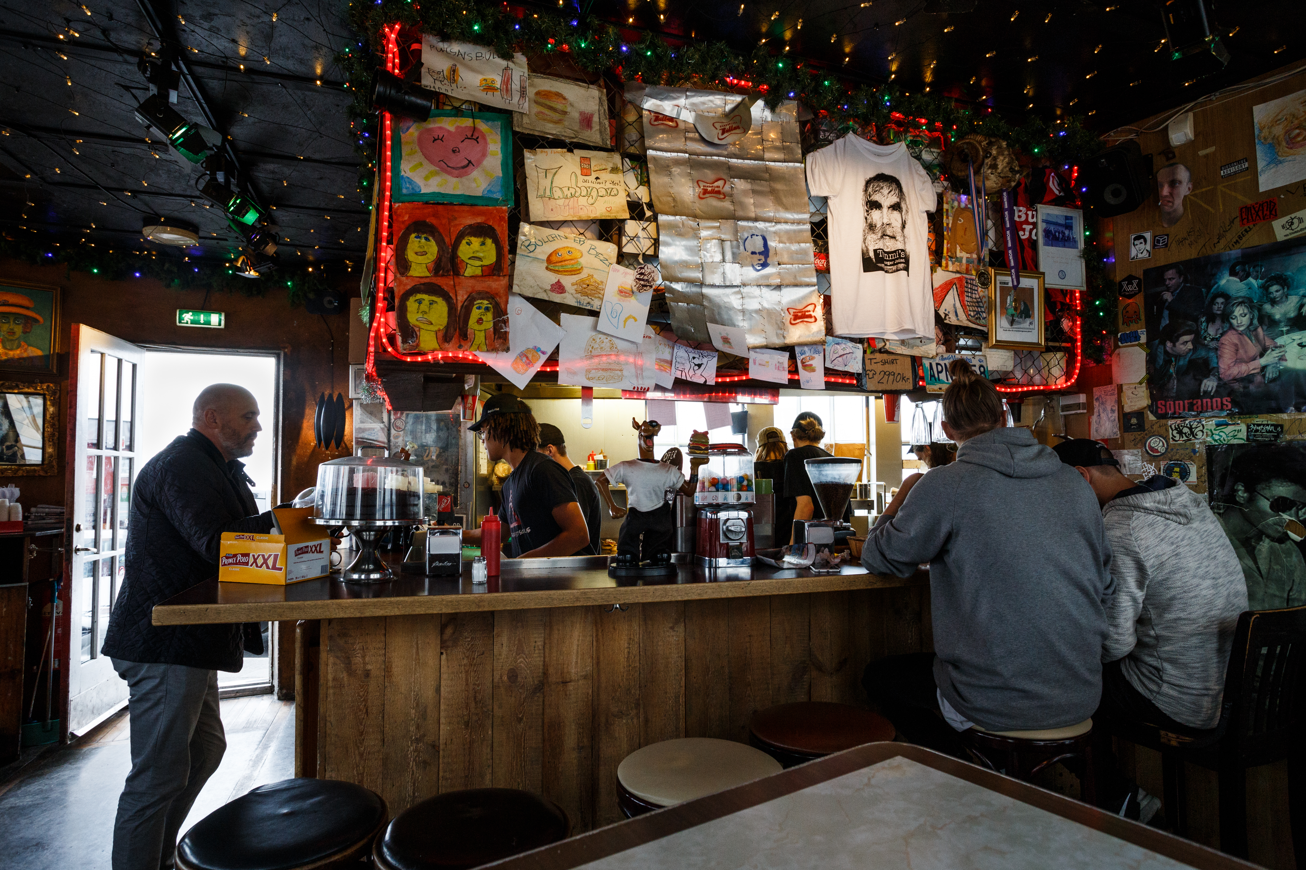 Zoals ik eerder al zei: IJsland is duur. Uit eten gaan is al helemaal ontzettend prijzig. Daarom bij deze twee opties voor lekker eten voor een goede prijs. Allereerst kan ik Hamborgara Búllan aanraden. Dit tentje, dat je kan vinden in het havengebied in een klein rond gebouwtje, serveert Amerikaanse stijl burgers in een absurde omgeving met kerstlichtjes, tekeningen aan de muur en retro muziek. De hamburgers zijn simpel, maar erg smakelijk. Ga hier heen voor een snelle hap en verwacht geen uitgebreid tafelen. Verder is het slim om niet te laat te gaan, dan kan het zijn dat je achteraan de rij kan aansluiten. Half zeven is een goed tijdstip.