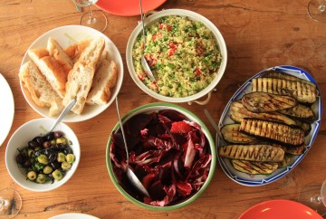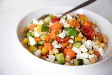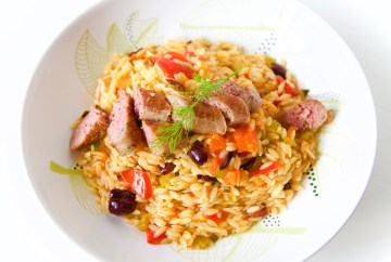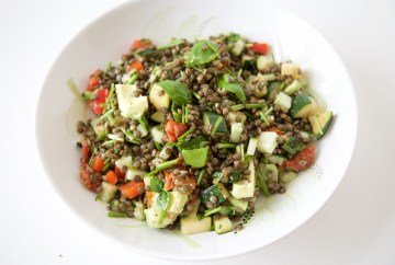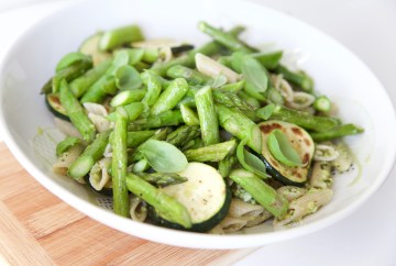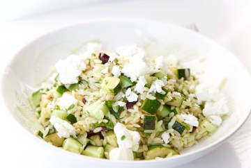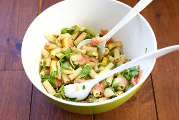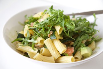 Pastasalade met gegrilde venkel, gele courgette en zalm