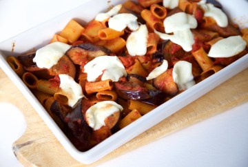 Aubergine pasta ovenschotel met buffelmozzarella √