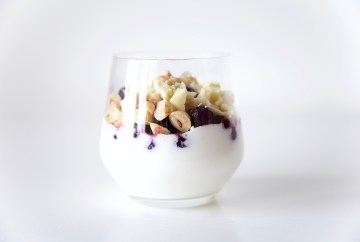 Griekse yoghurt panna cotta met blauwe bessen ◊