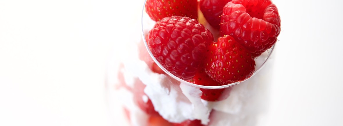 4. Kies voor één grote schaal of kleine schaaltjes of glazen. Begin met een laag rood fruit en dan een schep room-meringue-mengsel en zo verder. Eindig met wat rood fruit bovenop. Serveer direct!