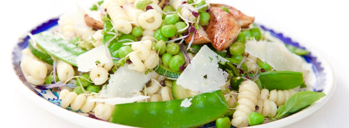 Na wat wikken en wegen in de supermarkt besloot ik ergens de afgelopen week dat ik een pastasalade zou gaan maken, met groene groentes. Iets anders dan ik meestal maak, want daar had ik echt zin in. Het resultaat? Deze boven verwachting lekkere frisse groene pastasalade! De salade staat in een half uurtje op tafel en kan ook als vegetarische variant bereid worden. Eet smakelijk!