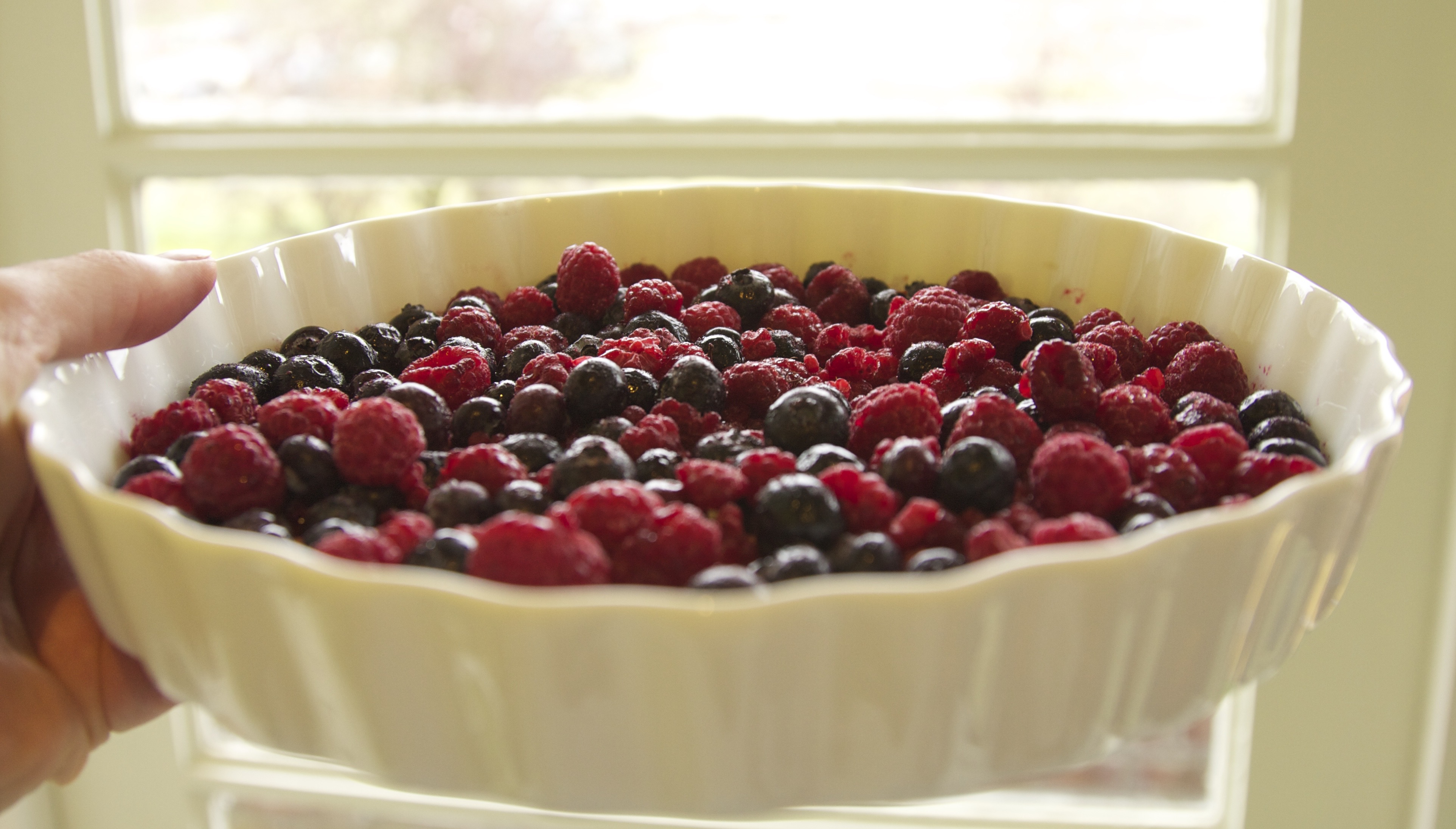 250 gr (bevroren) bosbessen + frambozen (of ander fruit naar keuze)