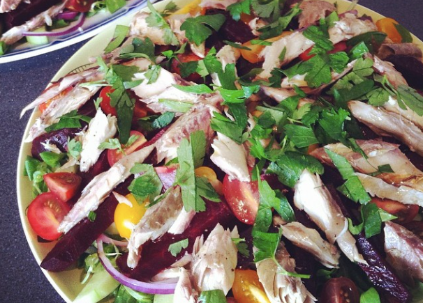 Het is herfst en de wintertijd is ingegaan, maar ik ben nog steeds een beetje in de ontkenning. Heerlijk hoor, stamppot, maar dat heb ik toch al snel wel weer gehad. Om te doen alsof het eigenlijk gewoon nog zomer is hierbij het recept voor een kleurrijke zomerse makreel salade! En nog heel gezond ook. Wat wil een mens nog meer?