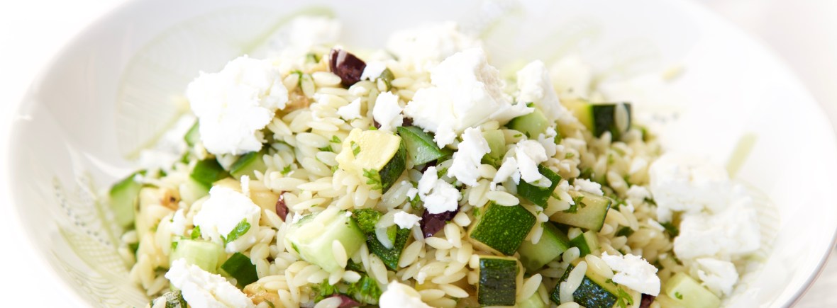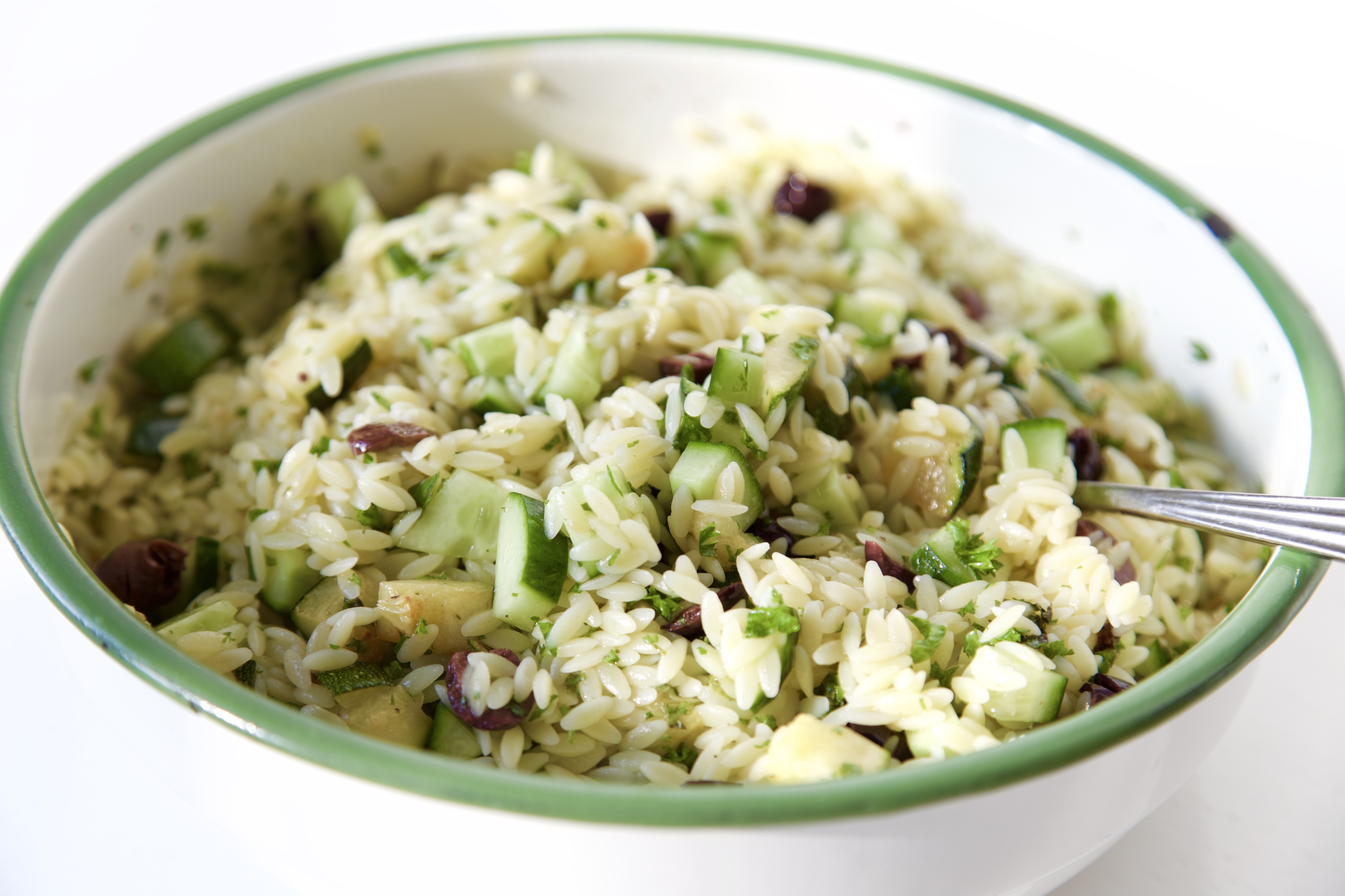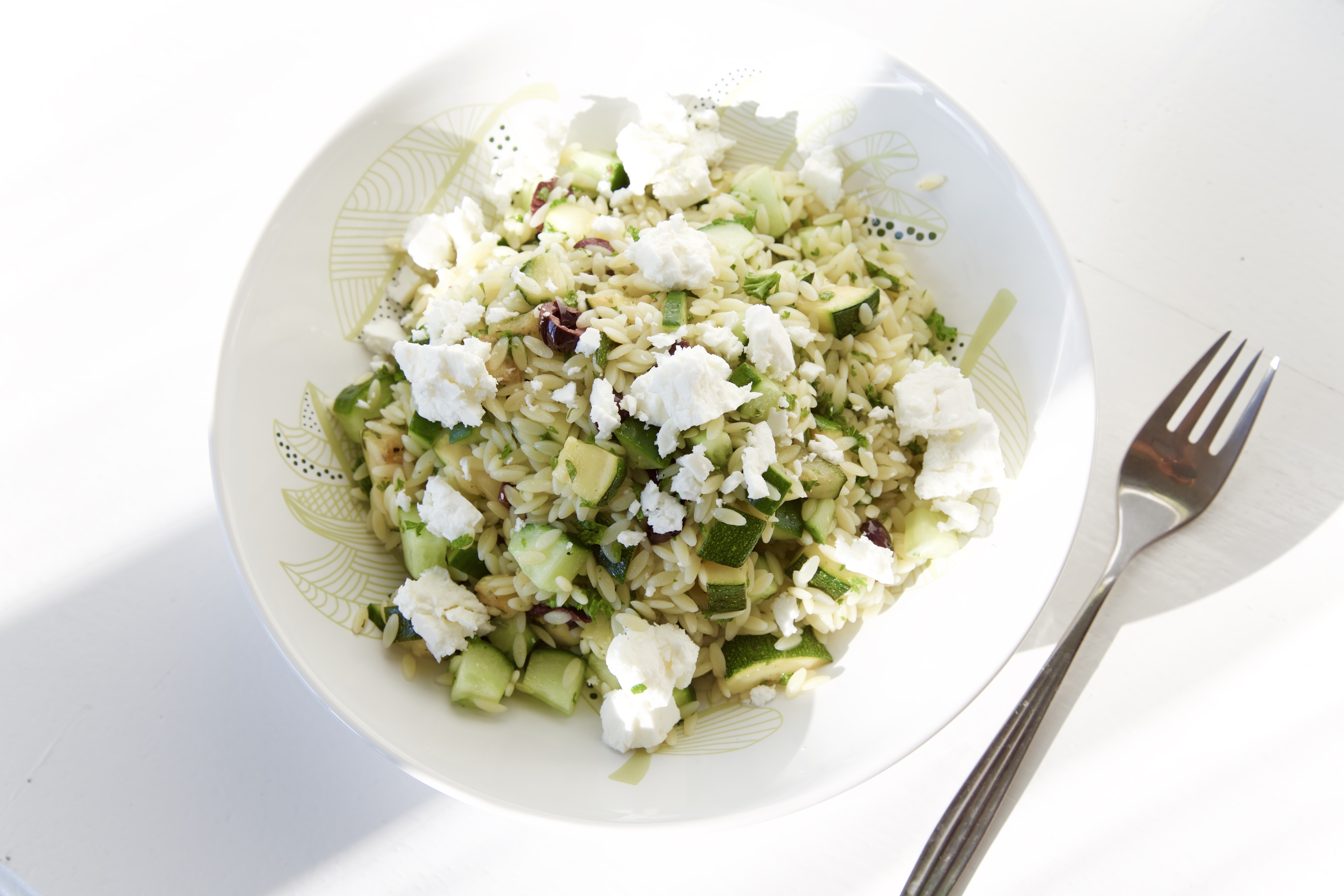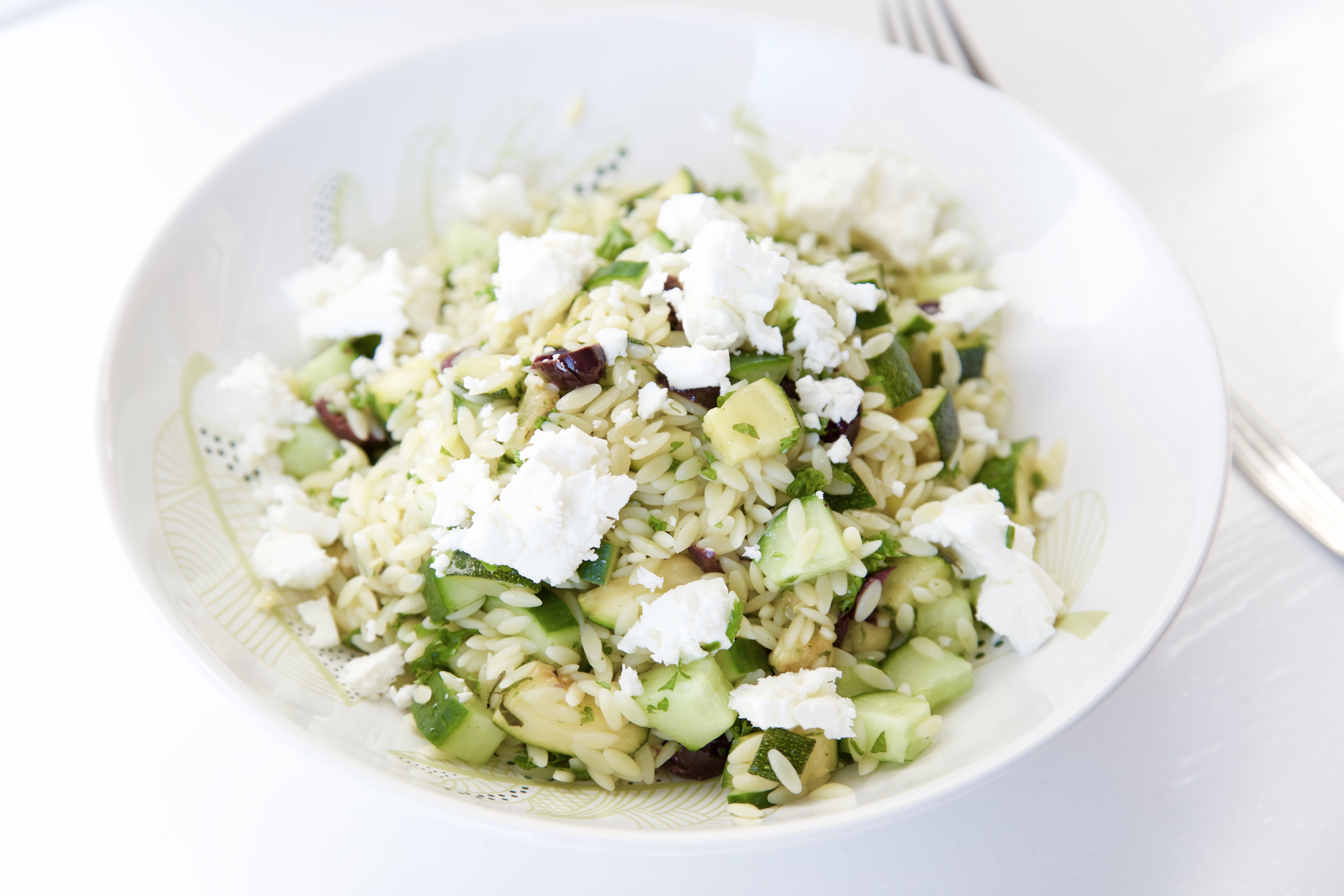 Een aantal jaren geleden at ik in Griekenland een fantastische stoofschotel met orzo. Eenmaal thuis kon ik deze pastasoort in de vorm van rijstkorrels niet vinden en zo verdween de orzo uit mijn gedachten. Totdat ik het laatst ineens in supermarkt zag liggen, onder de naam ‘riso’. Na wat denkwerk ontstond vervolgens het volgende recept: een super frisse vegetarische maaltijdsalade met onder andere orzo, Taggia olijven, citroen, munt en peterselie. Staat binnen 25 minuten op tafel, is uiteraard ontzettend smakelijk en perfect voor zomerse dagen!